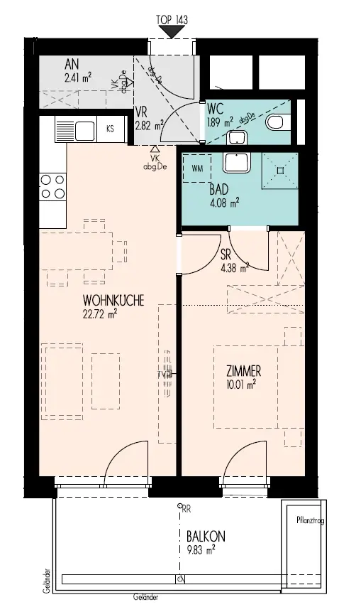 - Balkon: ca. 9,83 m², West-Ausrichtung