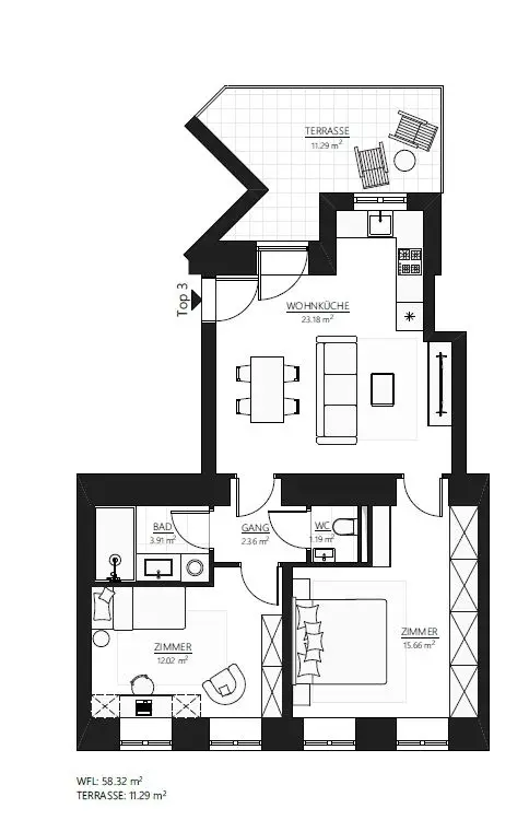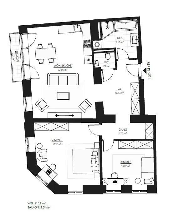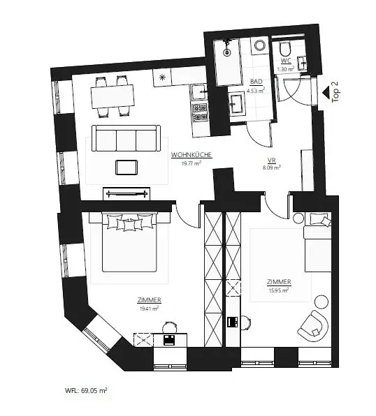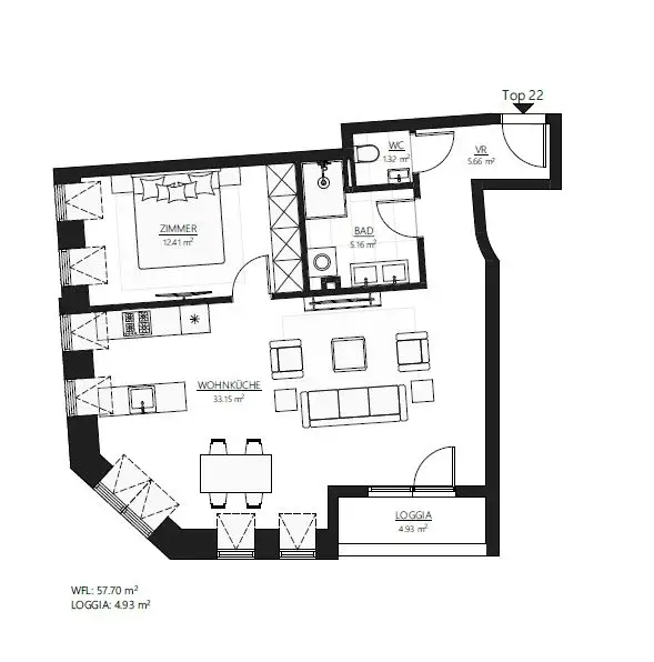 | Top | Stock | Zimmer | Wohnfläche | Freiflächen | Preis | Grundriss | Anfragen |