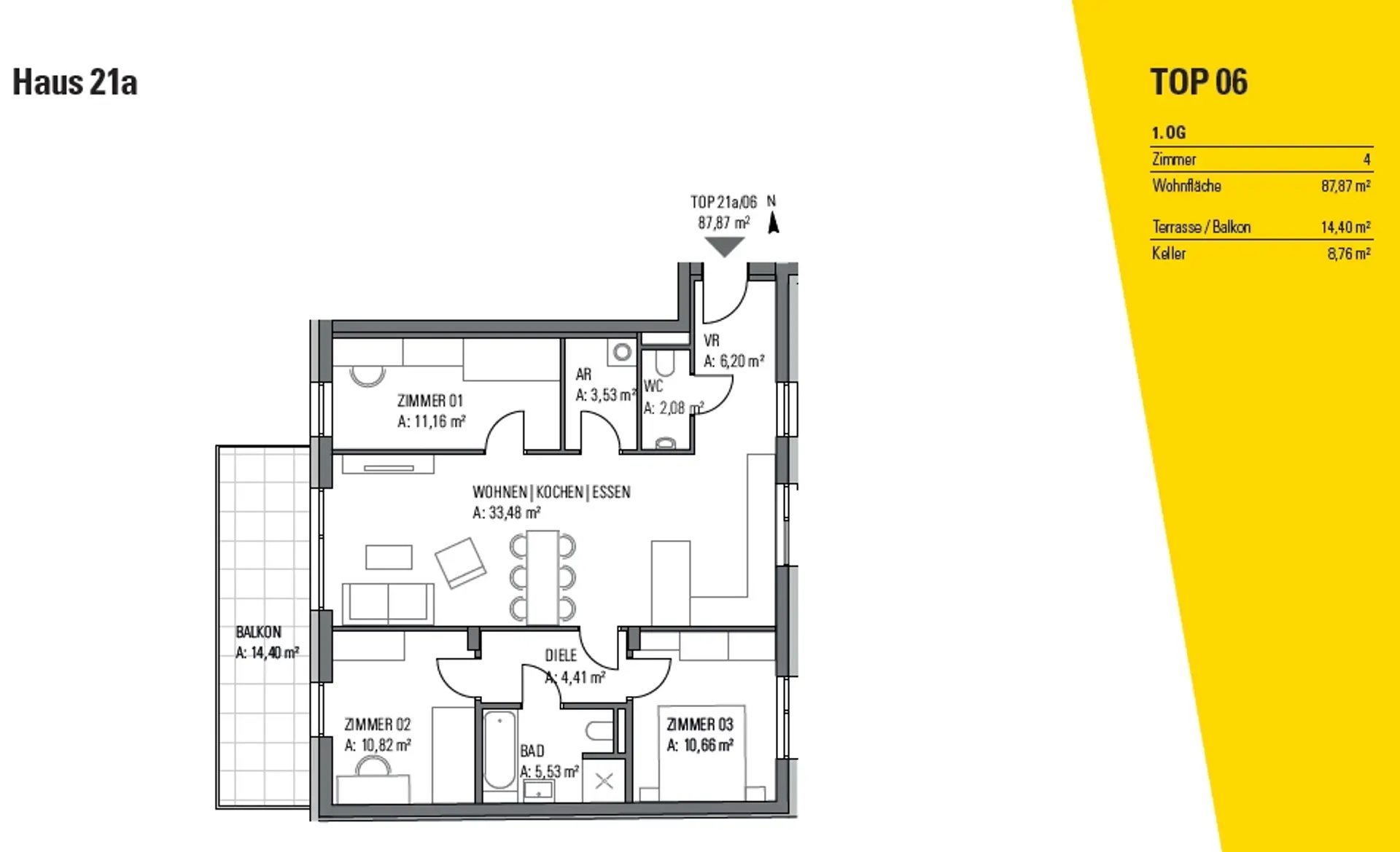 Die Wohnung verfügt über eine Wohnfläche von ca. 87,87 m² und überzeugt durch eine funktionale und gut nutzbare Raumstruktur, die auf den Alltag abgestimmt ist: