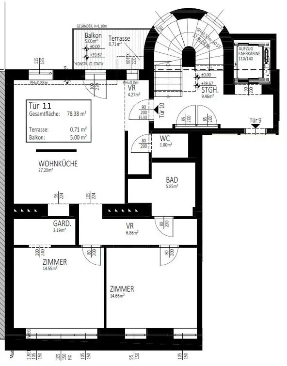 Diese ca. 78m² Wohnung teilt sich wie folgt auf: