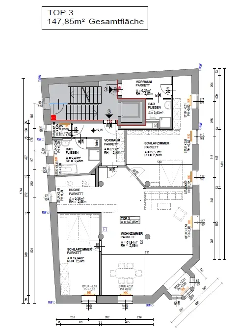 Die Wohnung verfügt über zwei separate Vorräume, die eine klare Trennung zwischen Wohnbereich und privatem Schlafbereich ermöglichen.