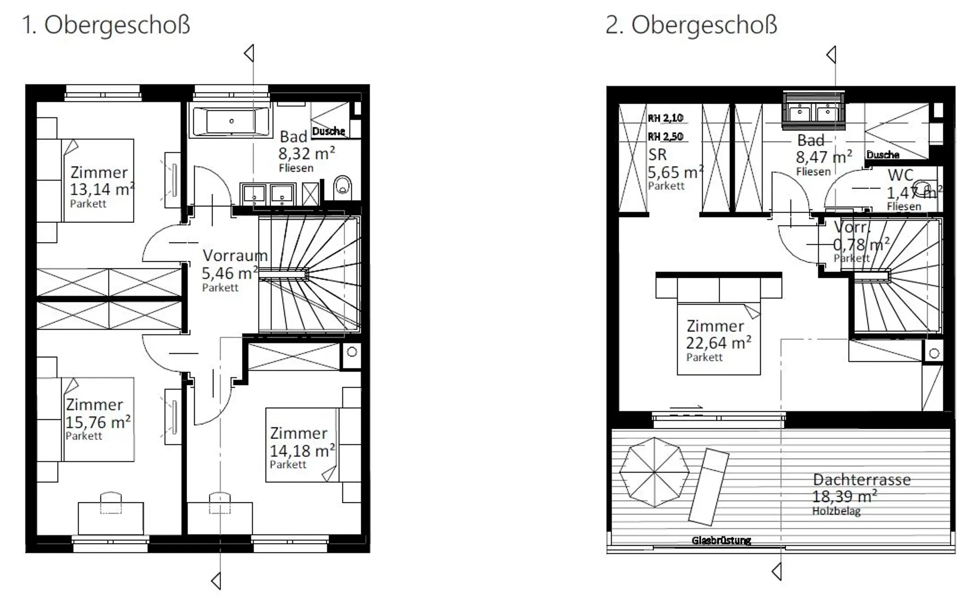 2 PKW-Stellplätze pro Haus