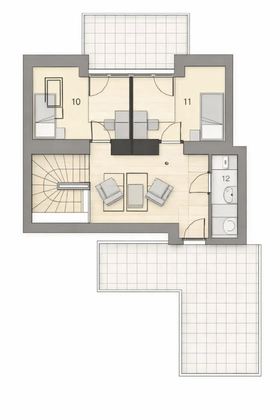 Das absolute Highlight sind die zwei Dachterrassen und der Balkon mit insgesamt über 40 m² Freifläche: