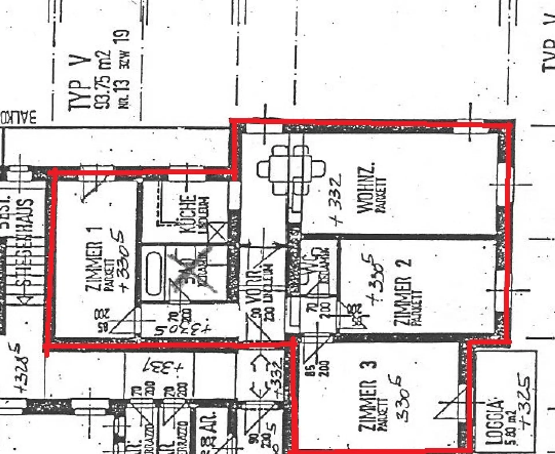 - Loggia mit ca. 5,80 m², begehbar von einem der Zimmer