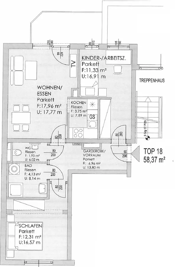 Beim Betreten der Wohnung empfängt Sie ein einladender Vorraum, der alle drei Zimmer separat erschließt – so genießen Sie Privatsphäre und flexible Nutzungsmöglichkeiten. Die Zimmer sind ideal zugeschnitten und bieten genug Raum, um sich entspannt zurückzuziehen oder produktiv zu arbeiten.