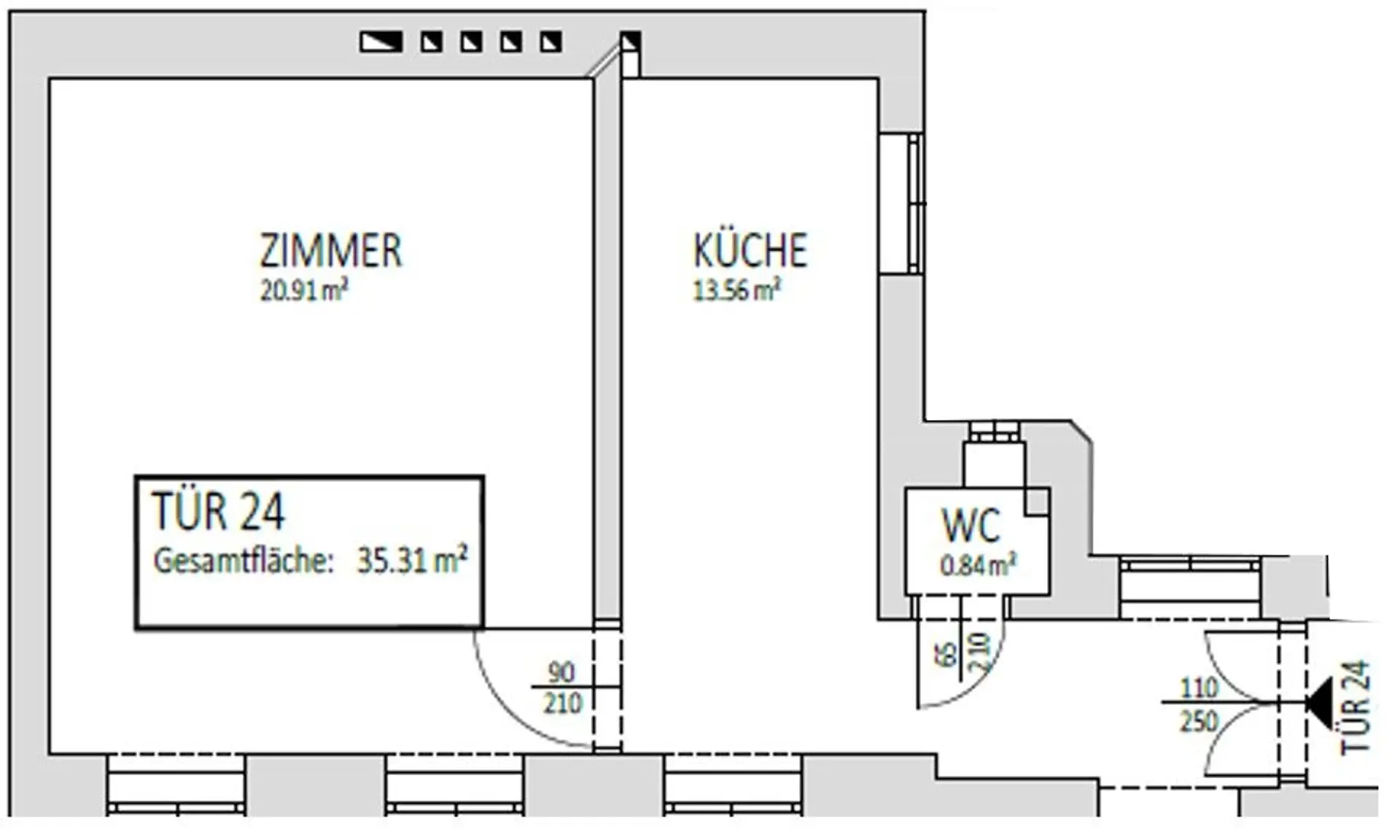 Die Wohnung verfügt über ca.36m² und teilt sich wie folgt auf: