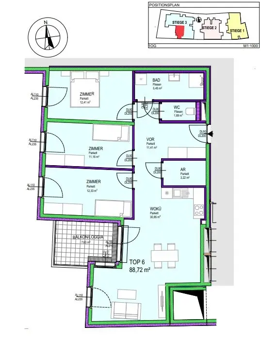 + 37 Wohnungen, 3 Geschäftslokale und 80 Garagenplätze (KP € 18.500,-)
