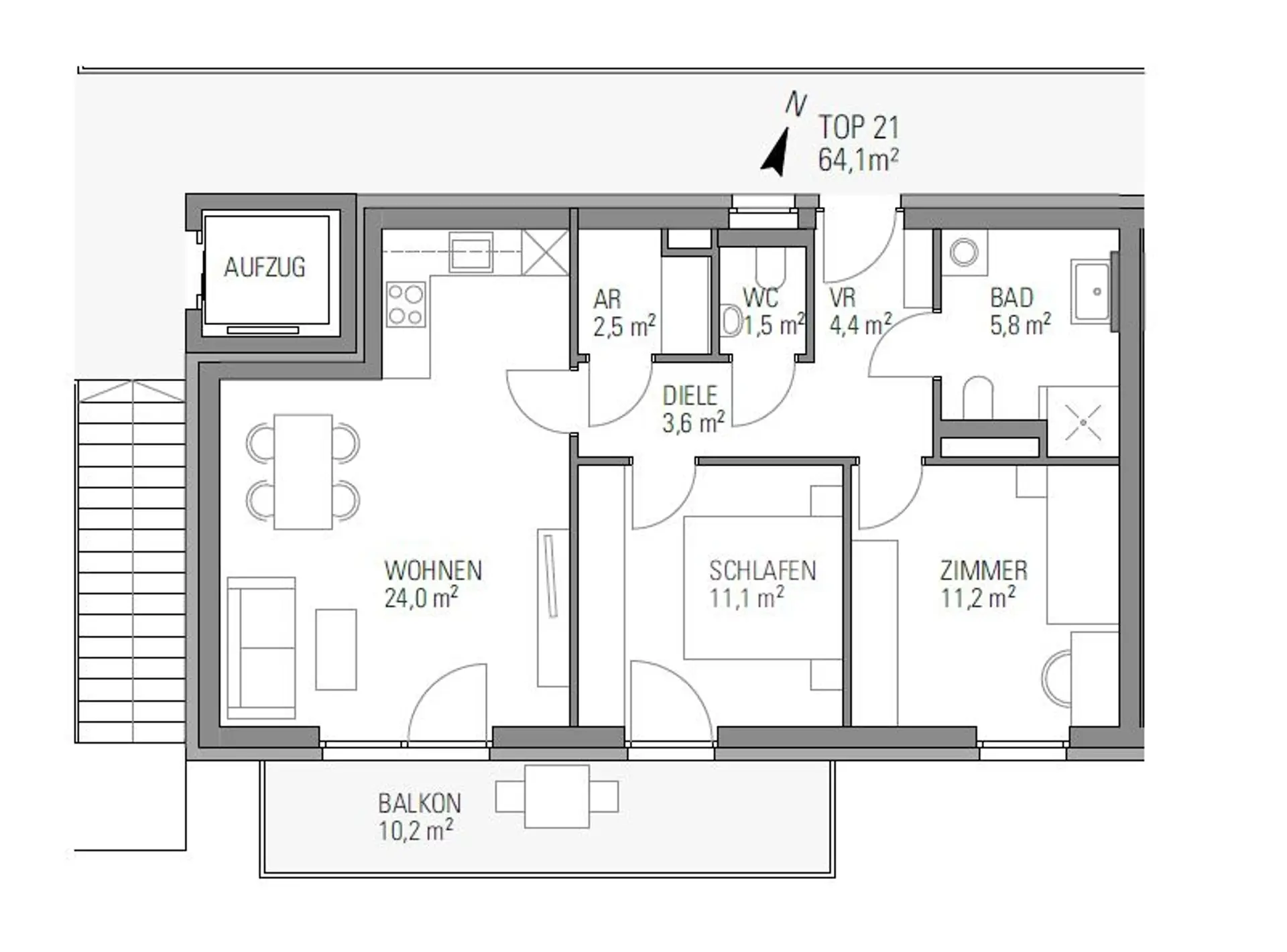 Optional ist ein Tiefgaragenplatz für € 21.000 (brutto) zu erwerben