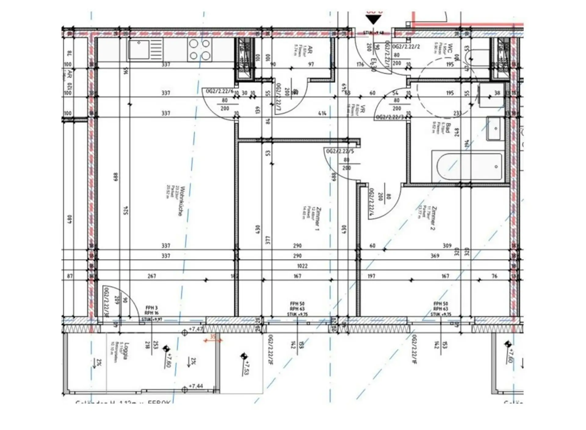 3-Zimmerwohnung im 2ten Stockwerk gliedert sich in folgende Räumlichkeiten: